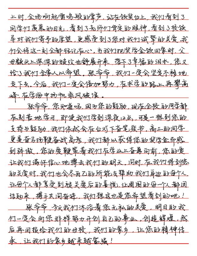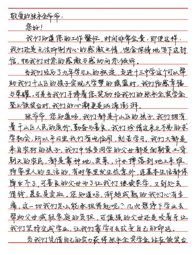 鞍山市第十三中學(xué)受資助學(xué)生的來(lái)信